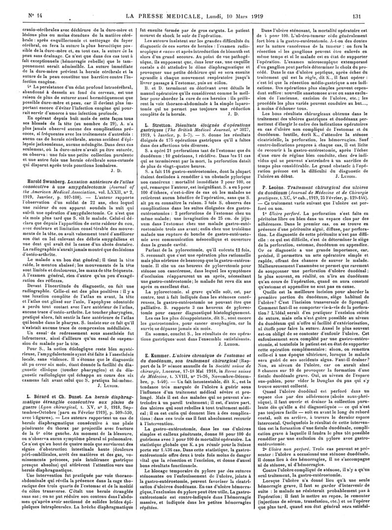 1919, Articles originaux. -