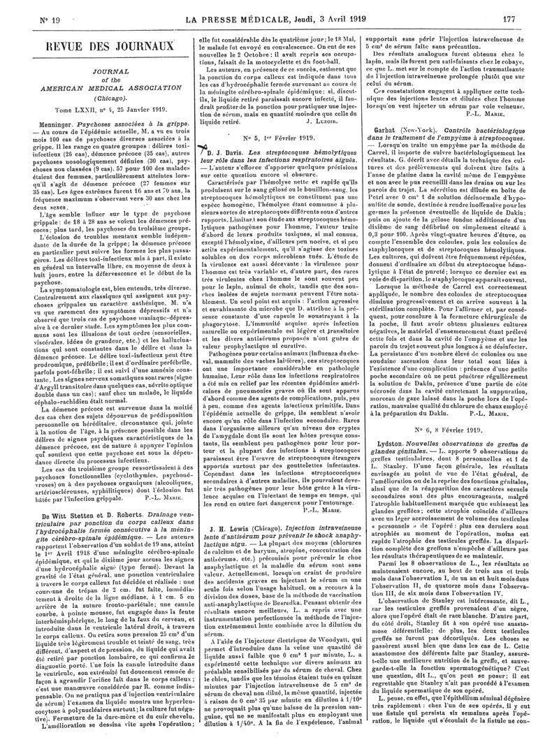 1919, Articles originaux. -