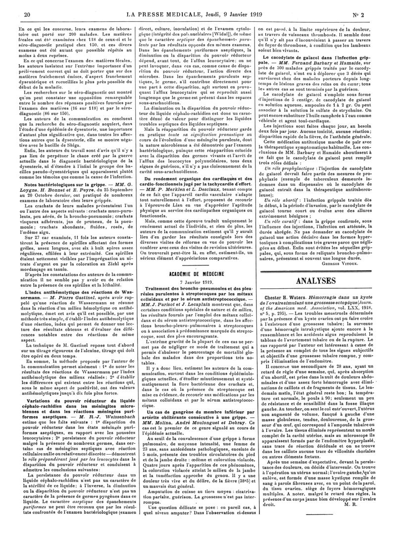 1919, Articles originaux. -