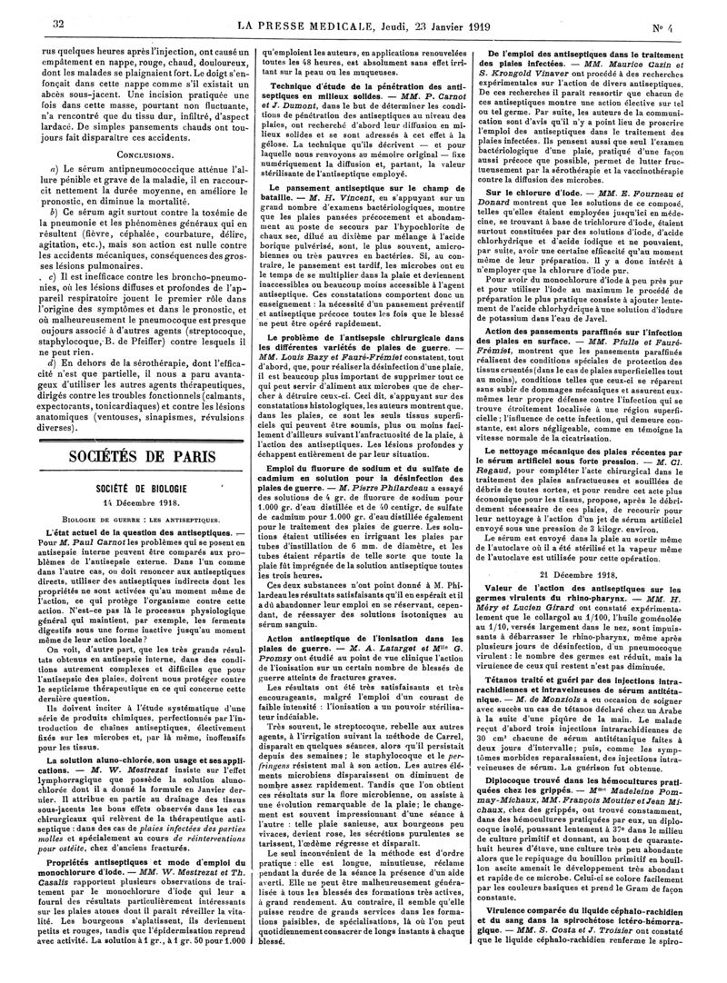 1919, Articles originaux. -