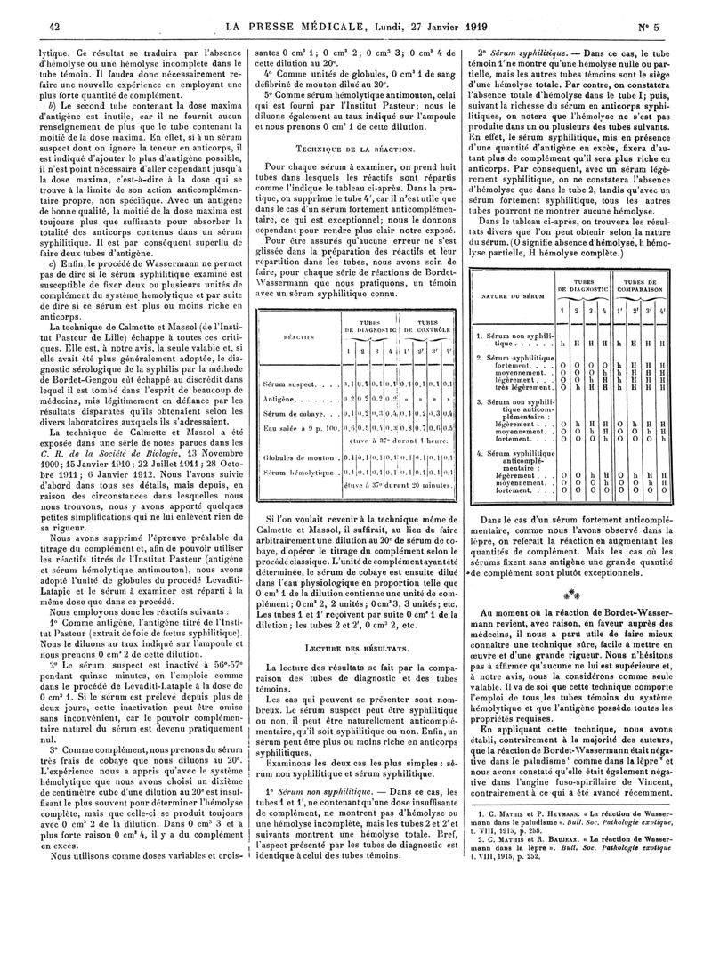 1919, Articles originaux. -