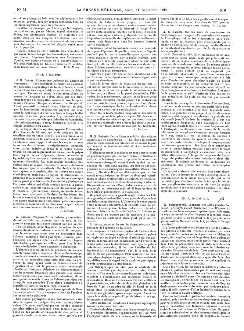 1919, Articles originaux. -