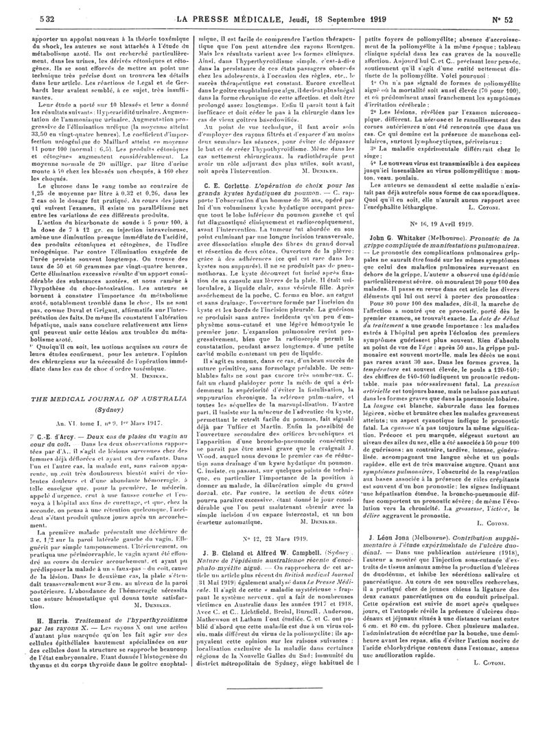 1919, Articles originaux. -