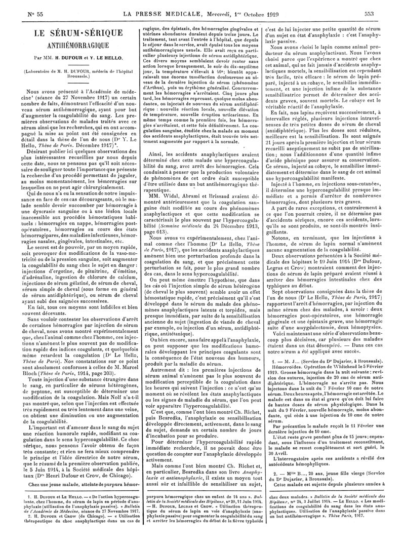 1919, Articles originaux. -