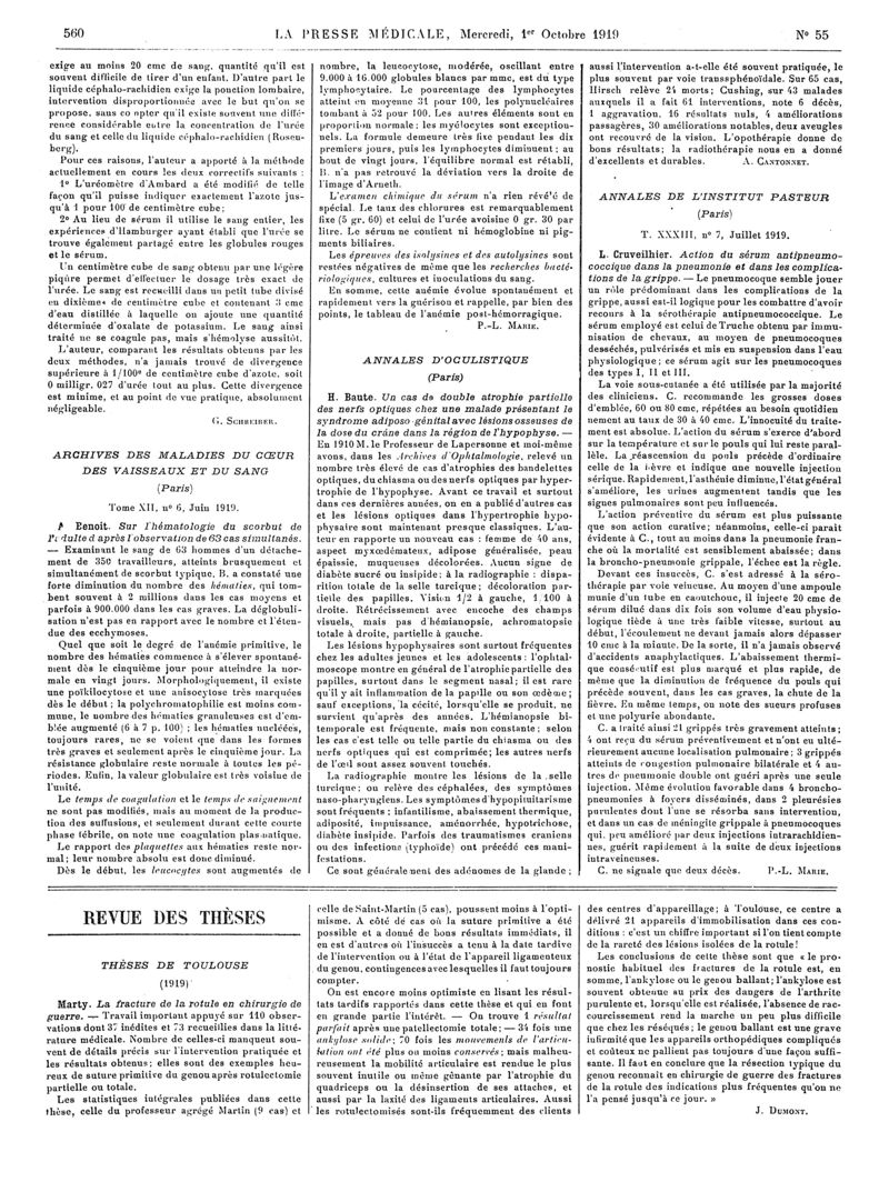 1919, Articles originaux. -