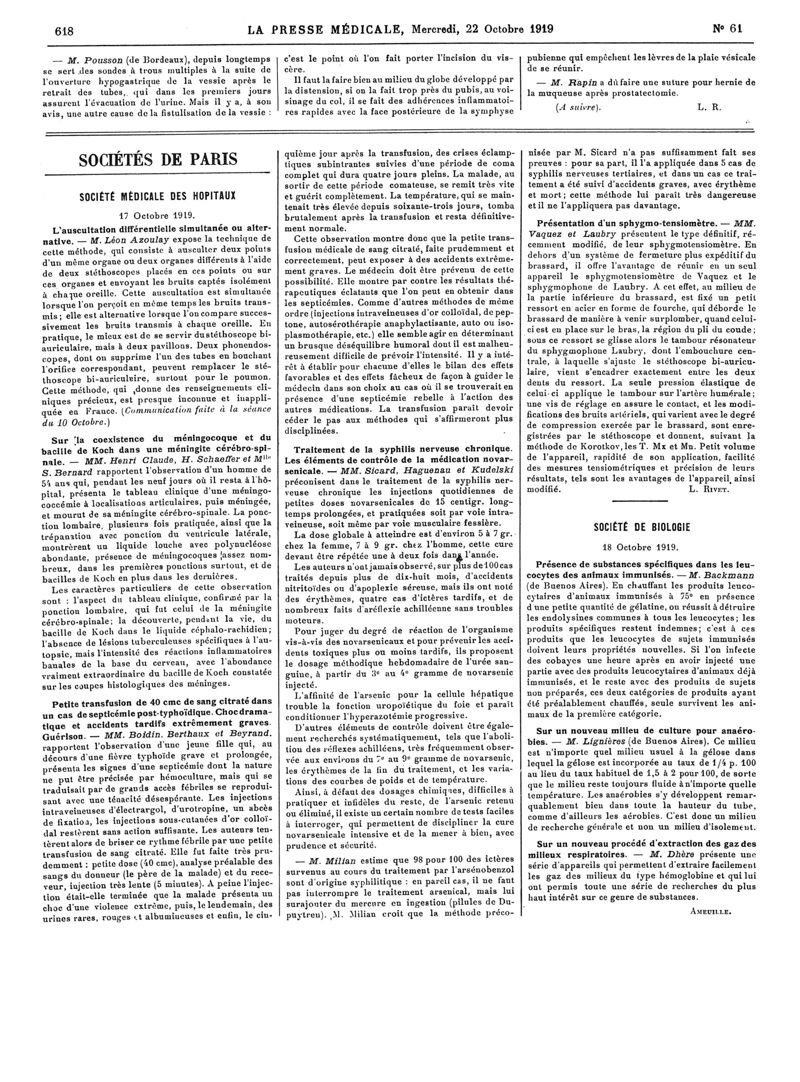 1919, Articles originaux. -