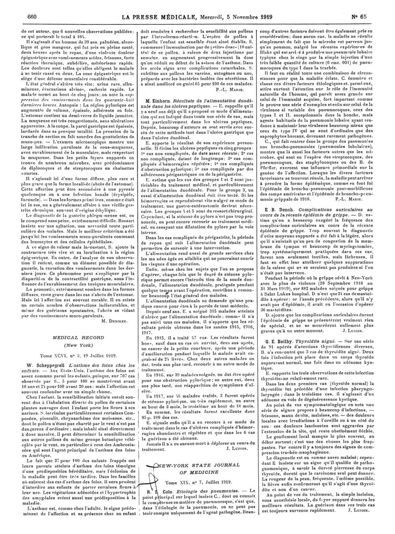 1919, Articles originaux. -