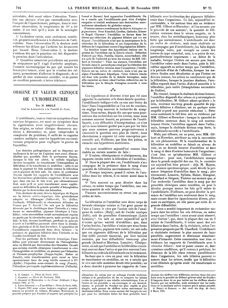 1919, Articles originaux. -