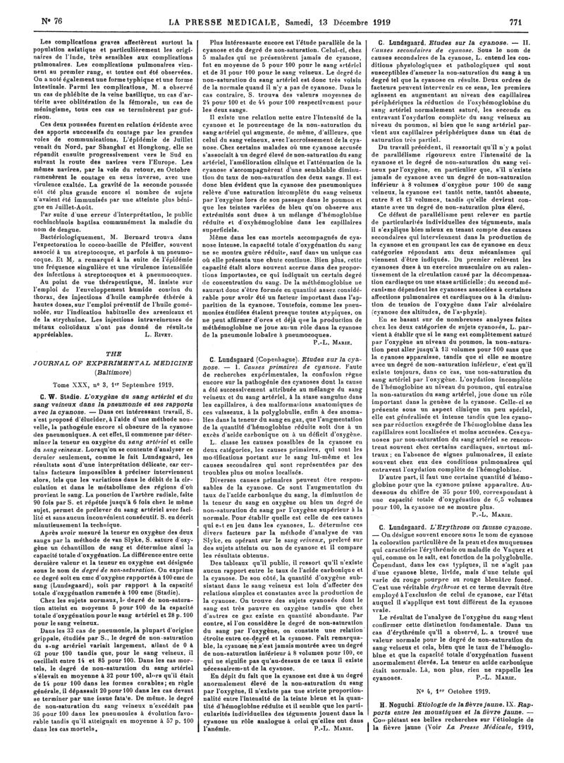 1919, Articles originaux. -