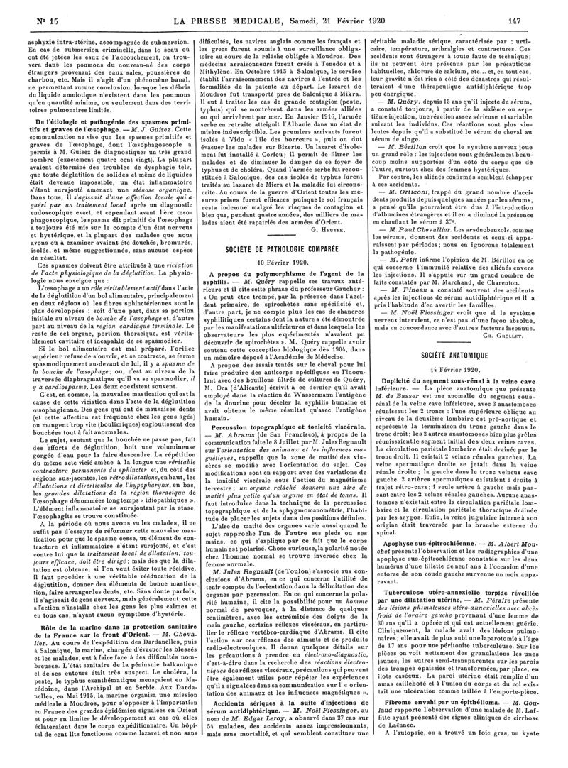 1920, Articles originaux. -