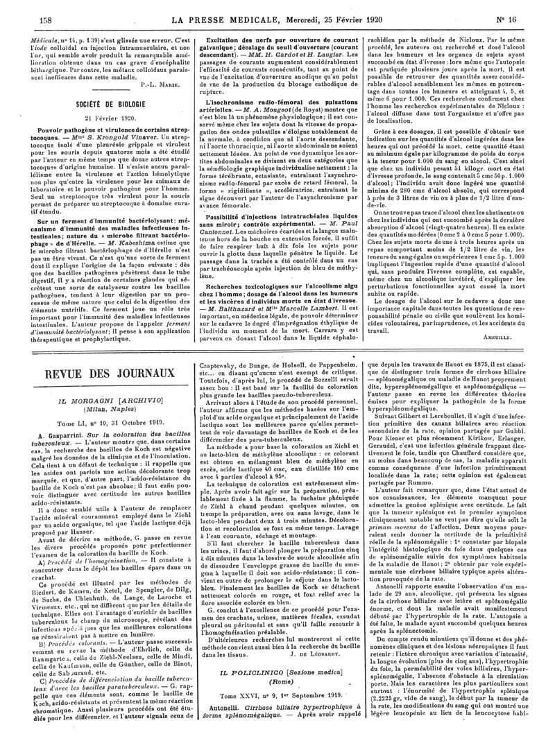 1920, Articles originaux. -