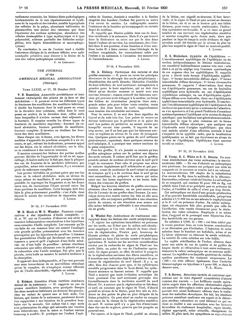 1920, Articles originaux. -