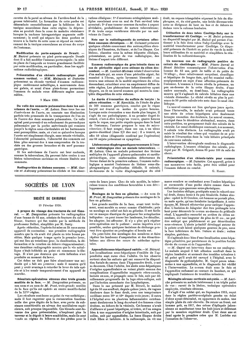 1920, Articles originaux. -