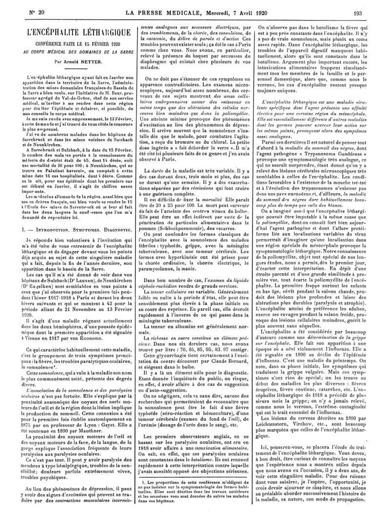1920, Articles originaux. -
