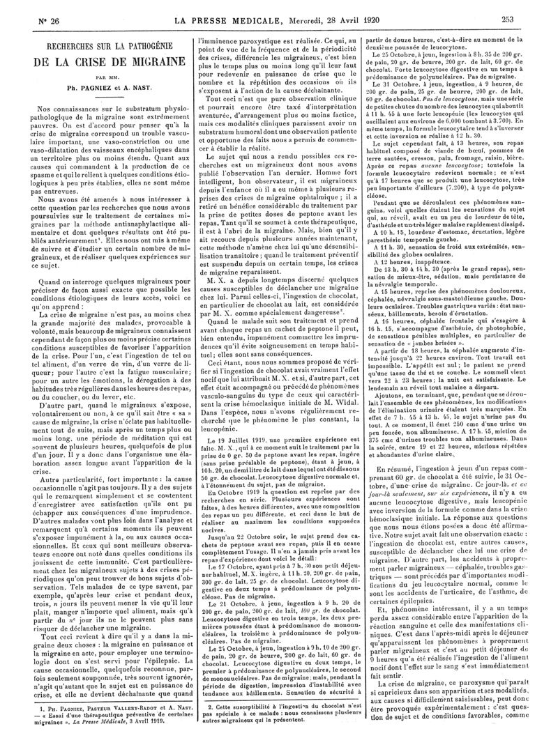 1920, Articles originaux. -
