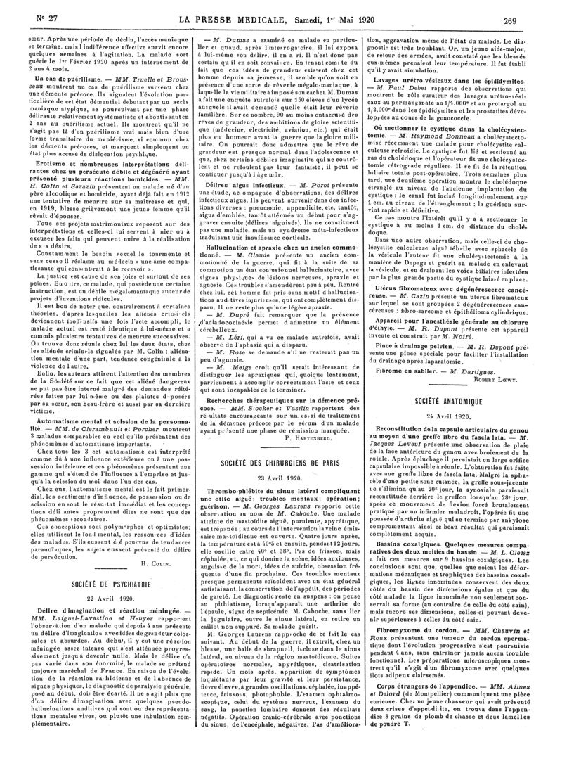 1920, Articles originaux. -