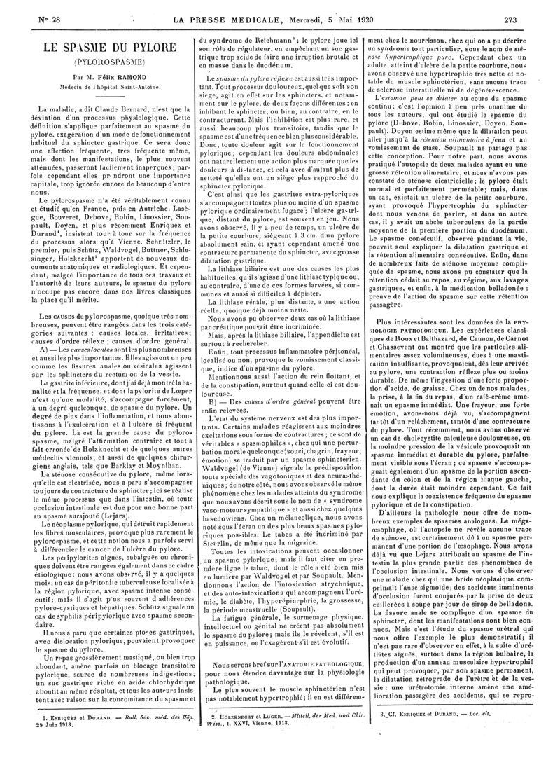 1920, Articles originaux. -