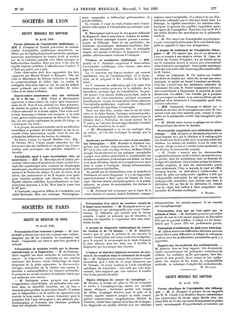1920, Articles originaux. -