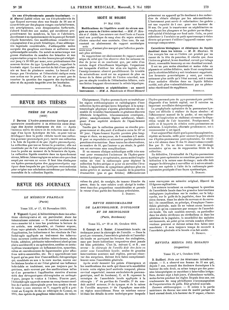 1920, Articles originaux. -
