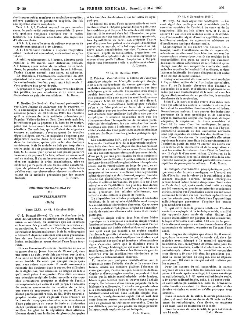 1920, Articles originaux. -