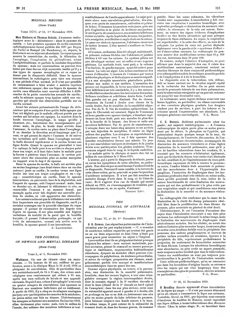 1920, Articles originaux. -