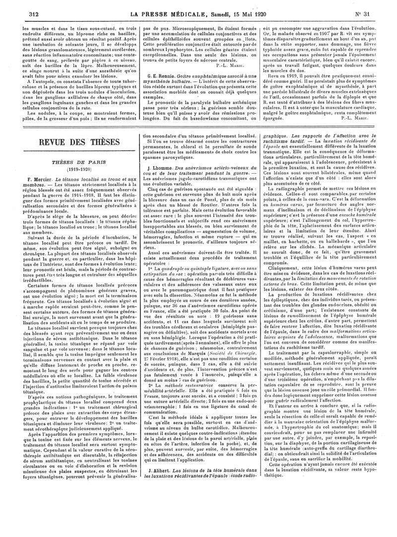 1920, Articles originaux. -