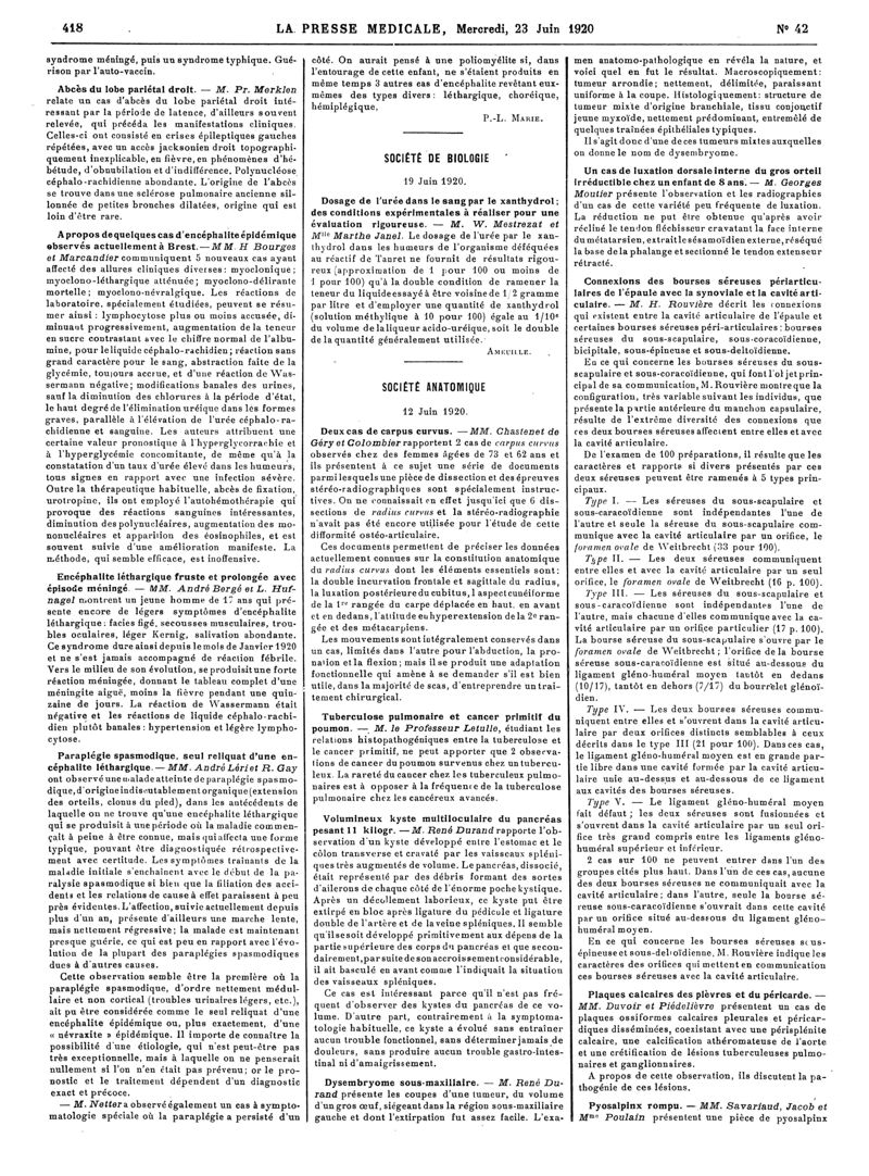 1920, Articles originaux. -