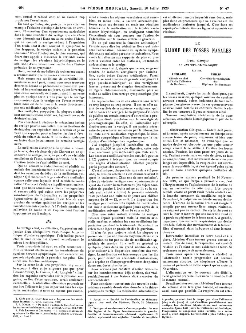 1920, Articles originaux. -