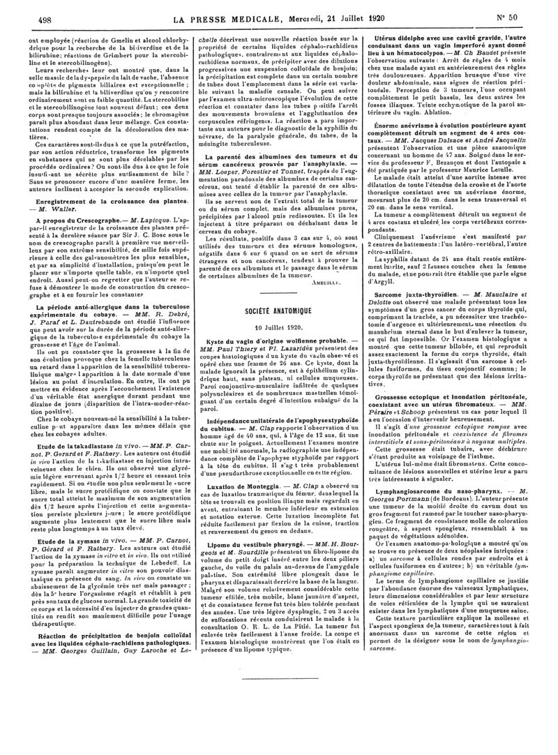 1920, Articles originaux. -