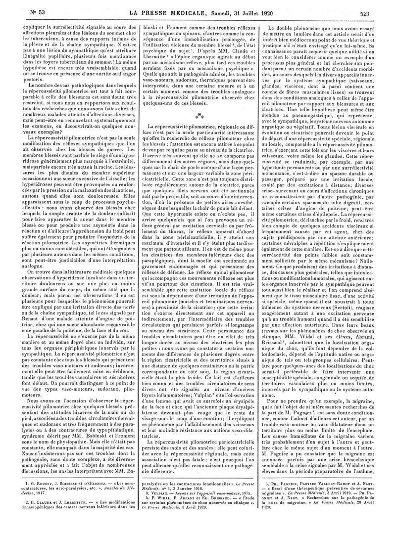 1920, Articles originaux. -