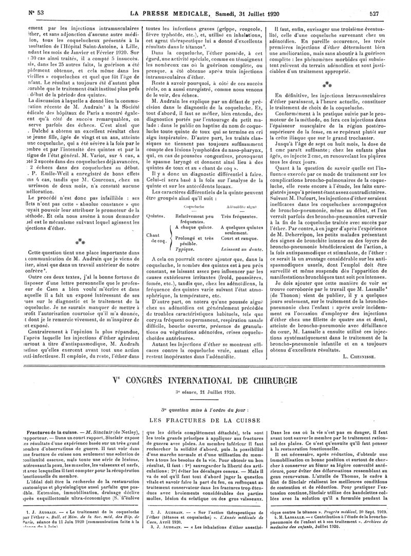 1920, Articles originaux. -