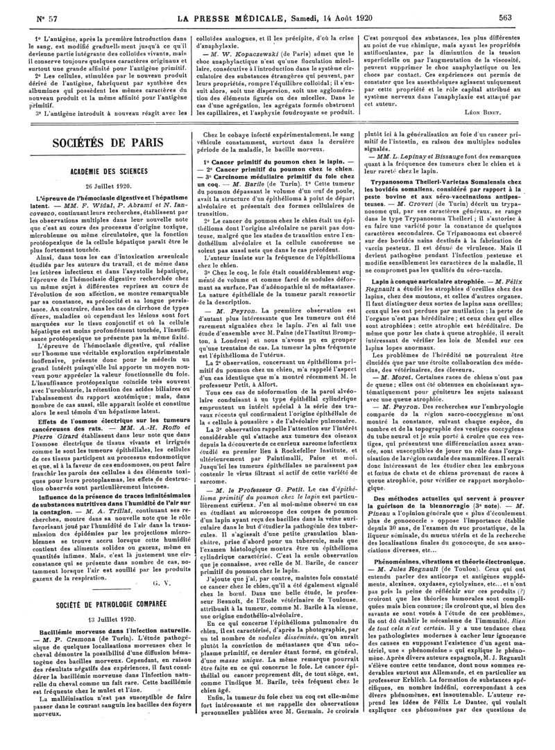 1920, Articles originaux. -