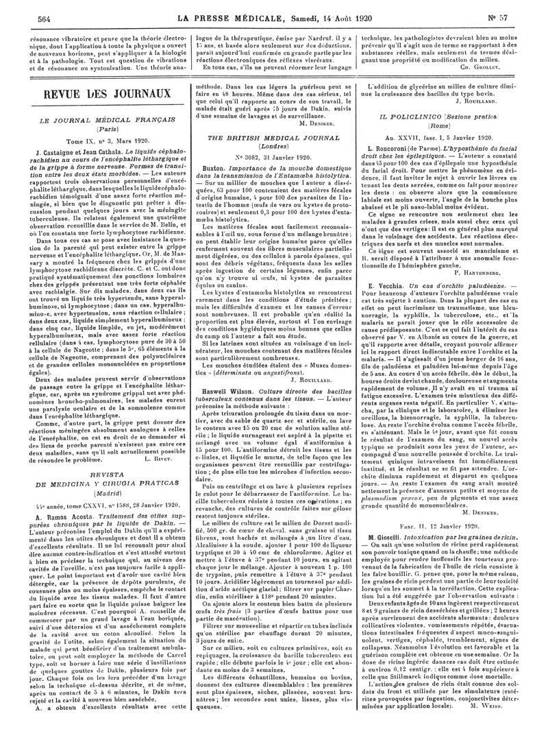 1920, Articles originaux. -