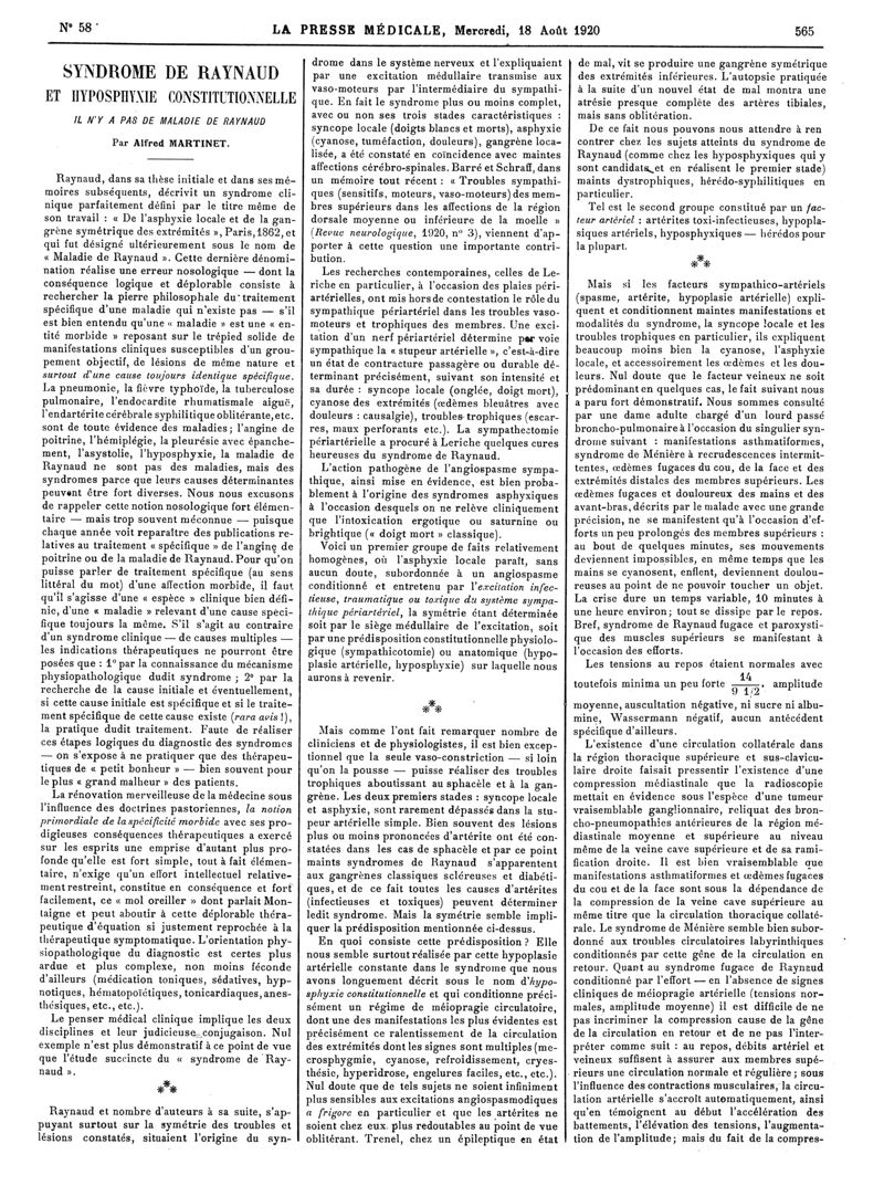 1920, Articles originaux. -