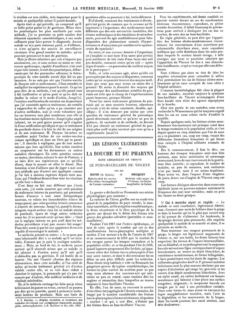 1920, Articles originaux. -