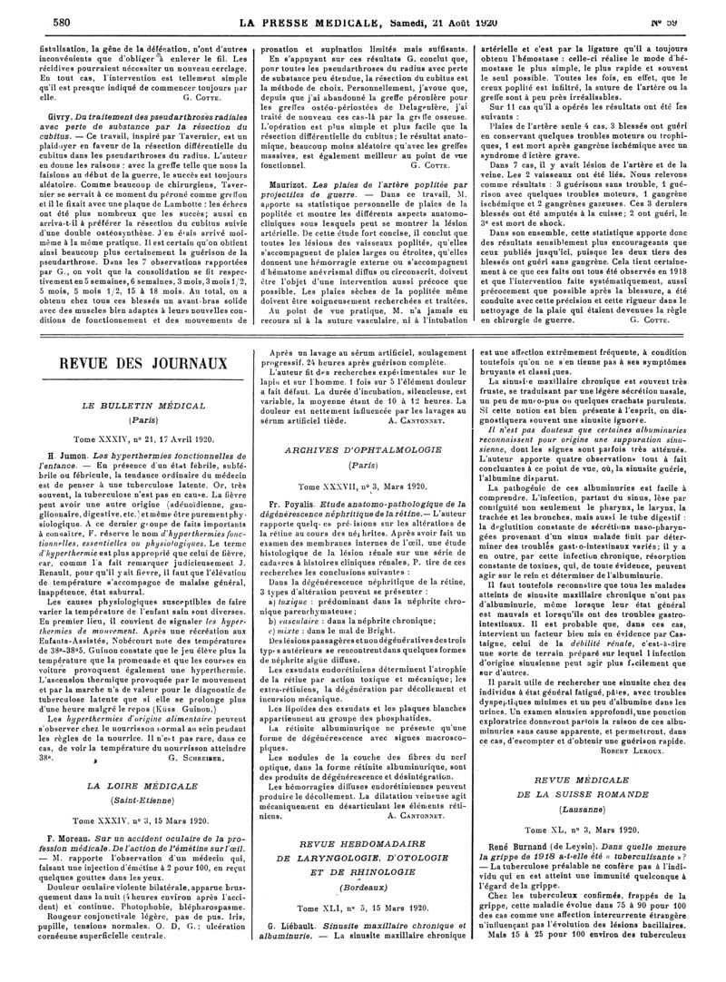 1920, Articles originaux. -