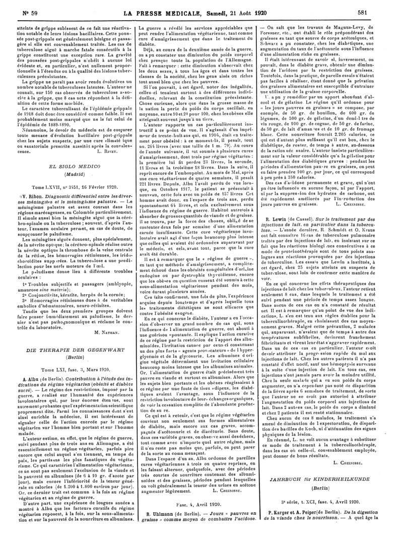 1920, Articles originaux. -