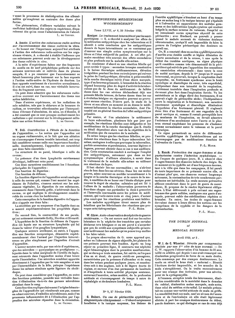 1920, Articles originaux. -