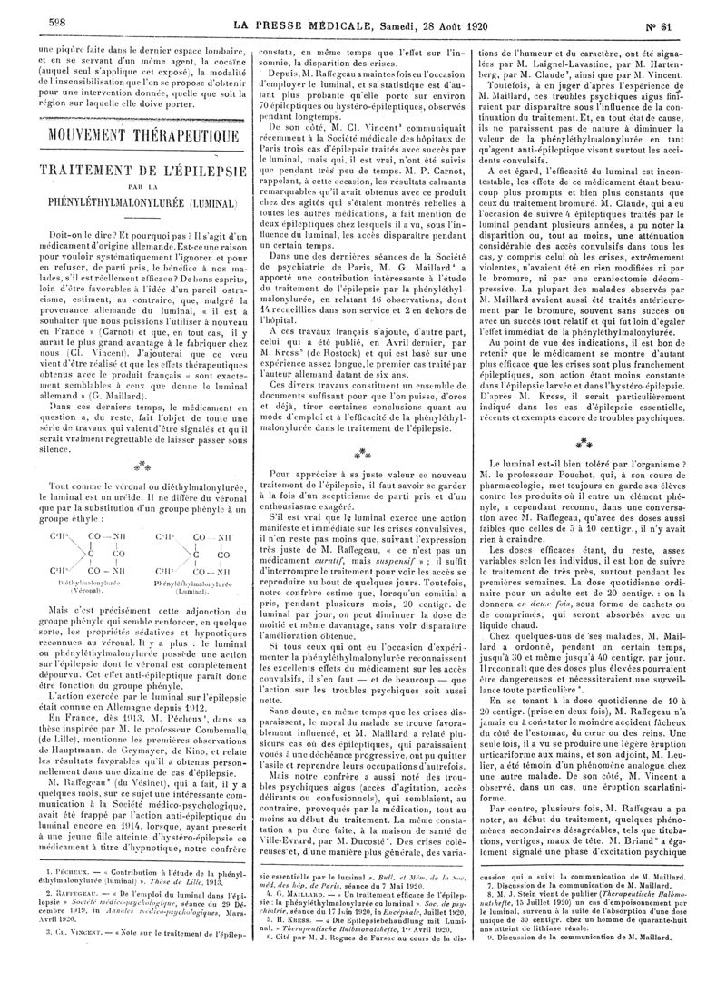 1920, Articles originaux. -