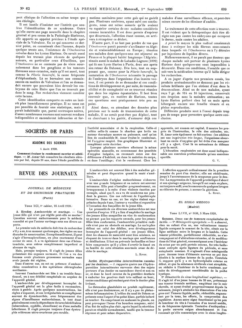 1920, Articles originaux. -