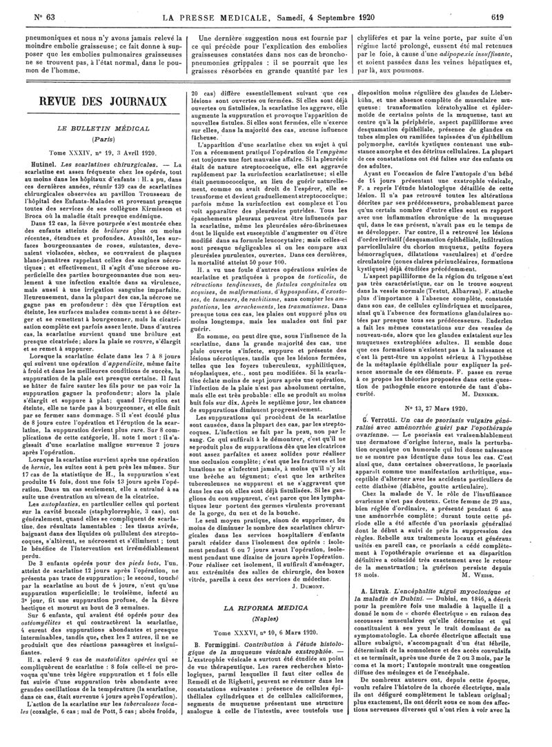 1920, Articles originaux. -