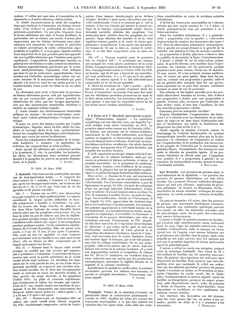 1920, Articles originaux. -