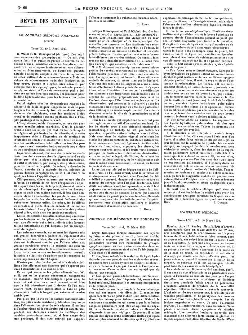 1920, Articles originaux. -