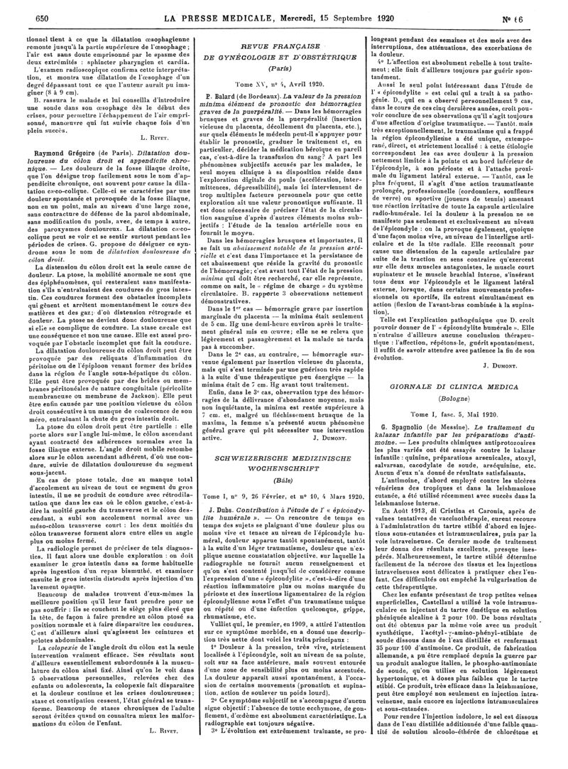 1920, Articles originaux. -