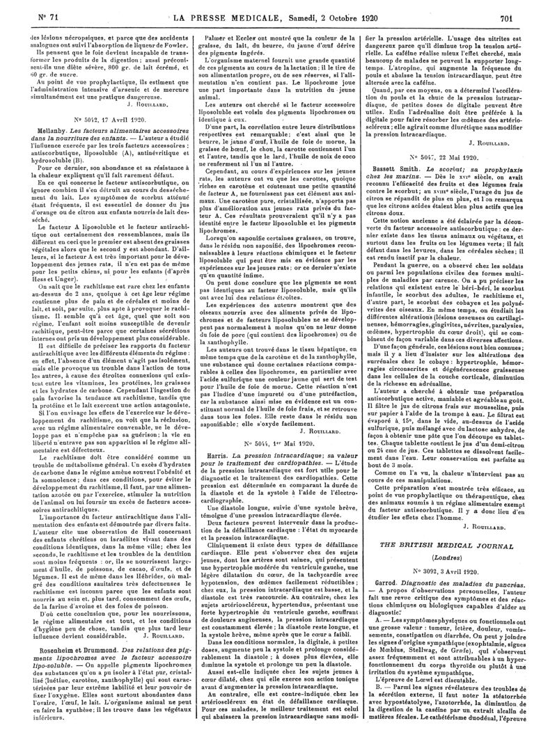 1920, Articles originaux. -