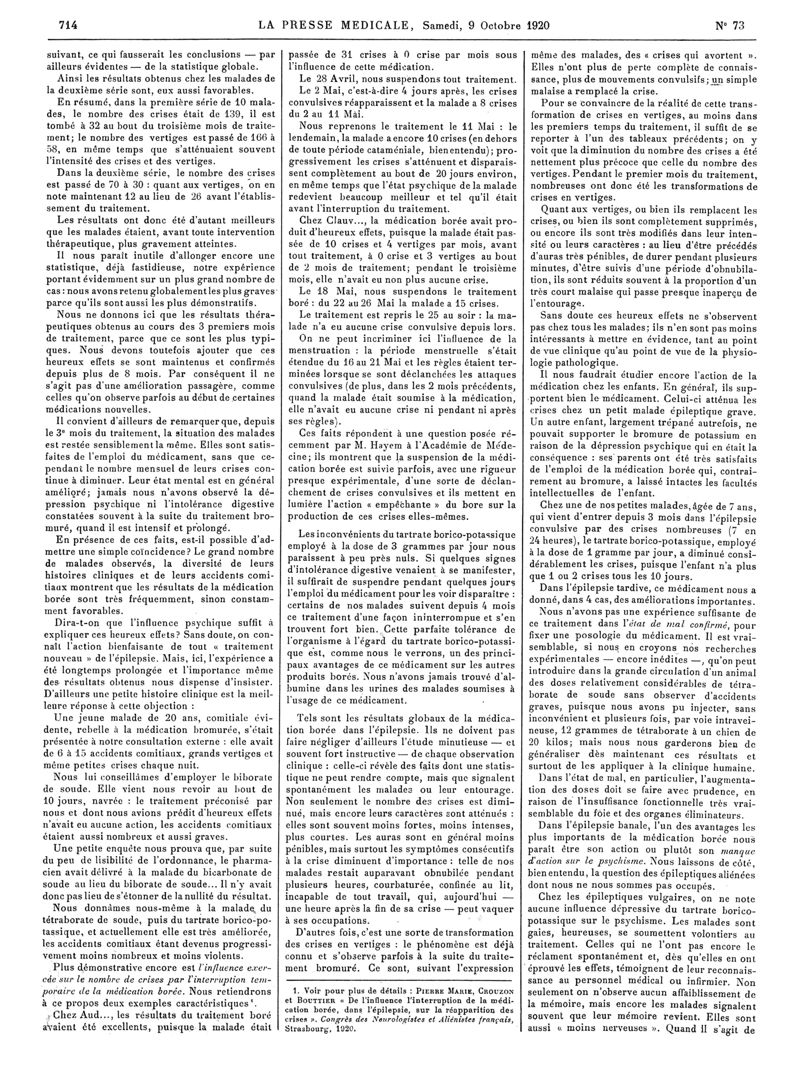 1920, Articles originaux. -