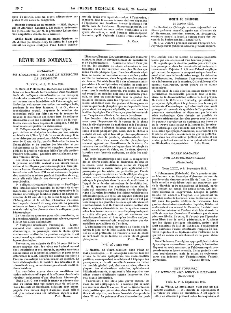 1920, Articles originaux. -