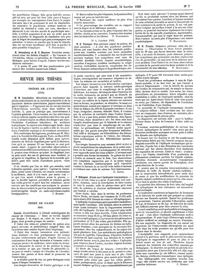 1920, Articles originaux. -