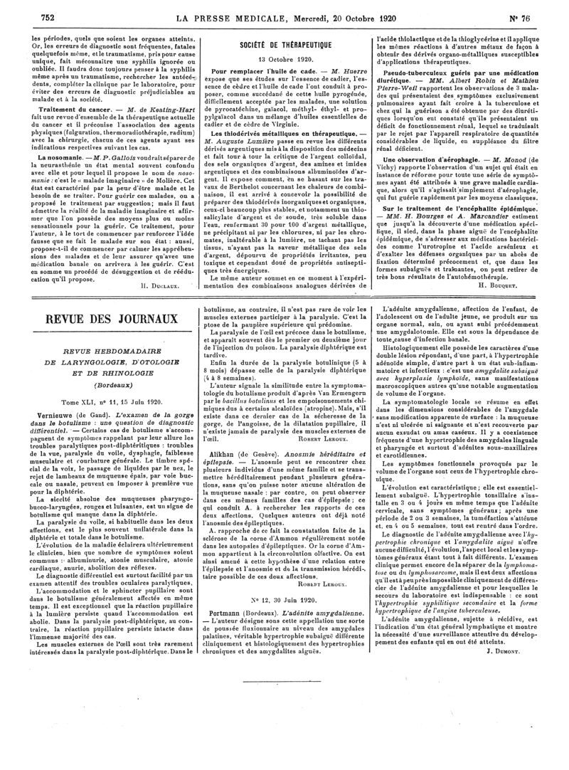 1920, Articles originaux. -