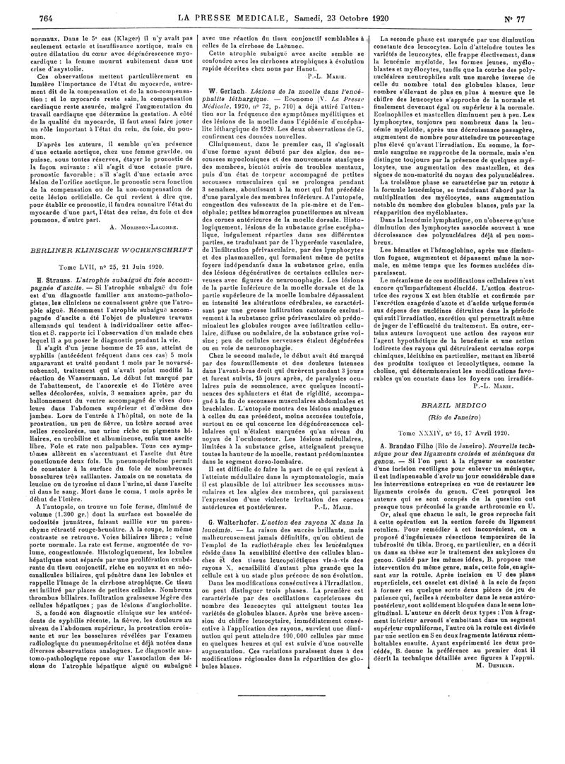 1920, Articles originaux. -